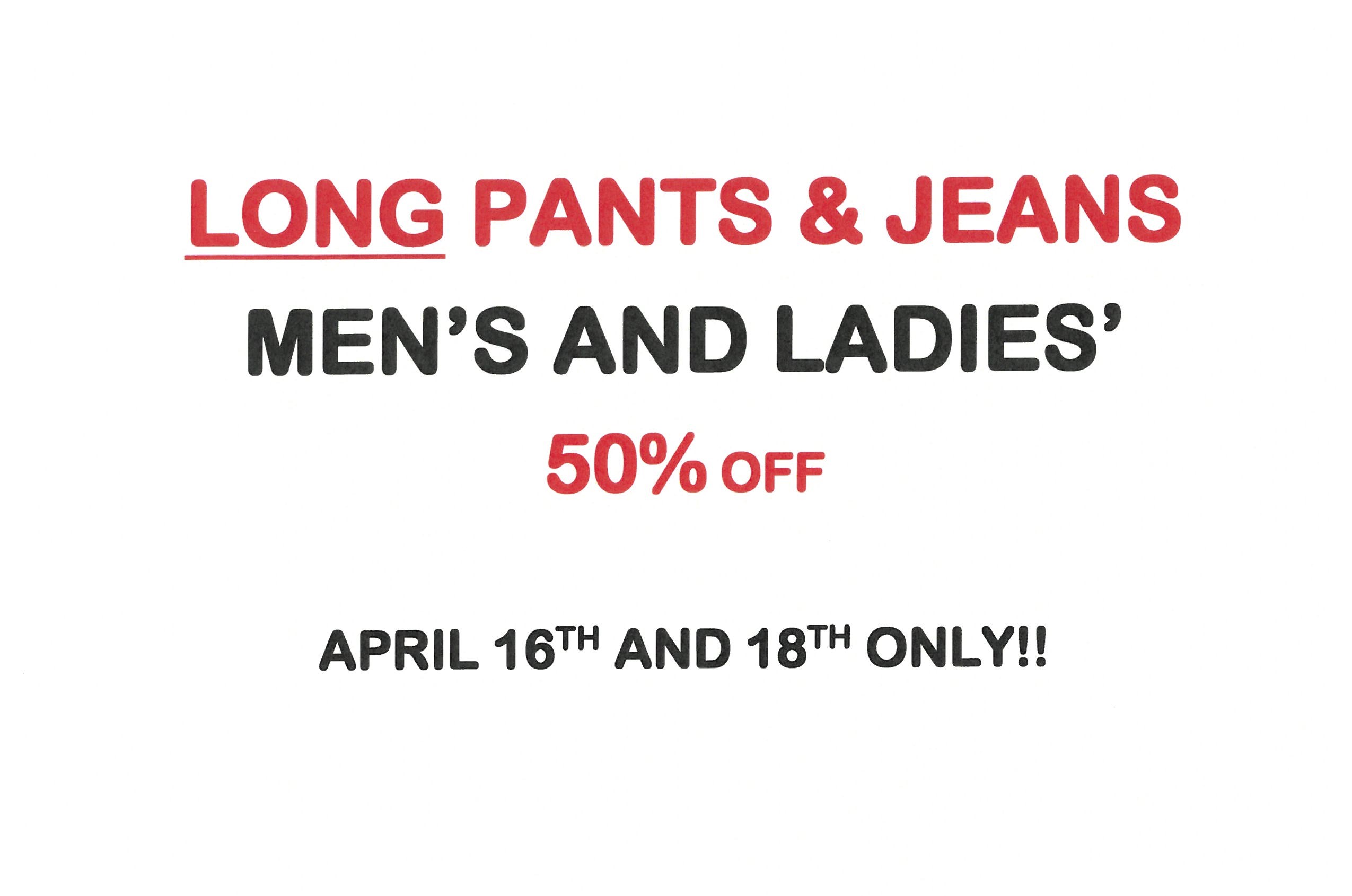 This week’s sale at the TSA Thrift Shop Renfrew is men’s and ladies’ long pants and jeans are 50% off! Sale is Thursday April 16 (11-5) and Saturday April 18 (10-2). Please enter via the Quarry Avenue entrance, and please bring your own bags.